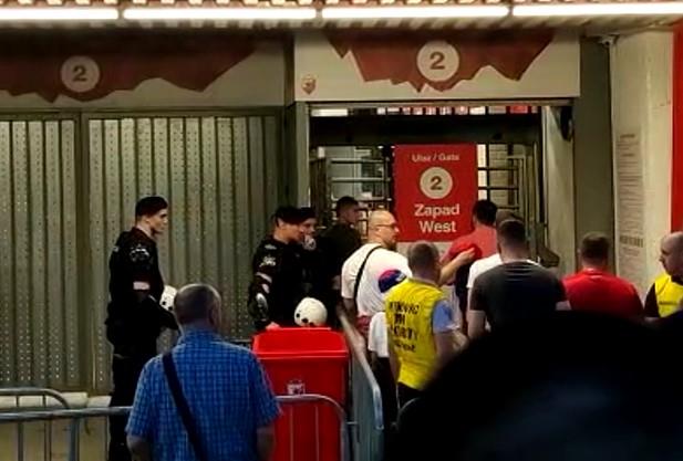 Redari nisu dozvolili jednom navijaču da unese srpsku trobojku. Na kraju je navijač ušao na utakmicu pošto je ostavio redarima srpsku zastavu.