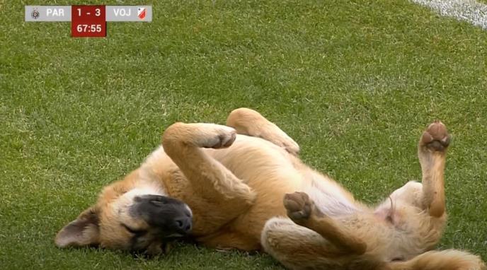 - Kako je njemu dobro - uz osmeh je rekao Nebojša Višković, jedan od najboljih srpskih komentatora, kada je u kadru bio pas koji pošteno uživa na terenu.