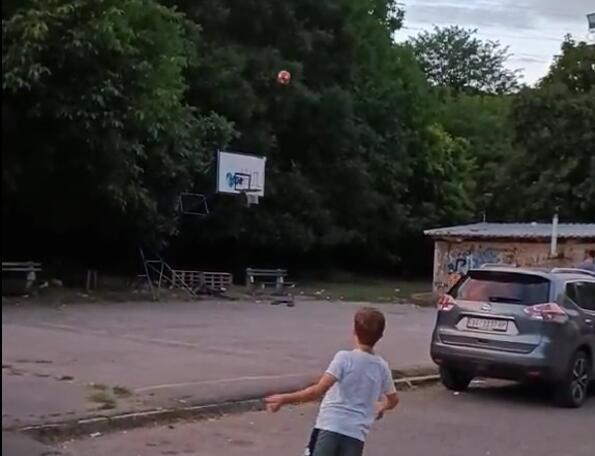 Na Bežaniji je snimljeno umeće mladog desetogodišnjeg dečaka koji je iz velike udaljenosti udarcem nogom fudbalsku loptu poslao u koš.