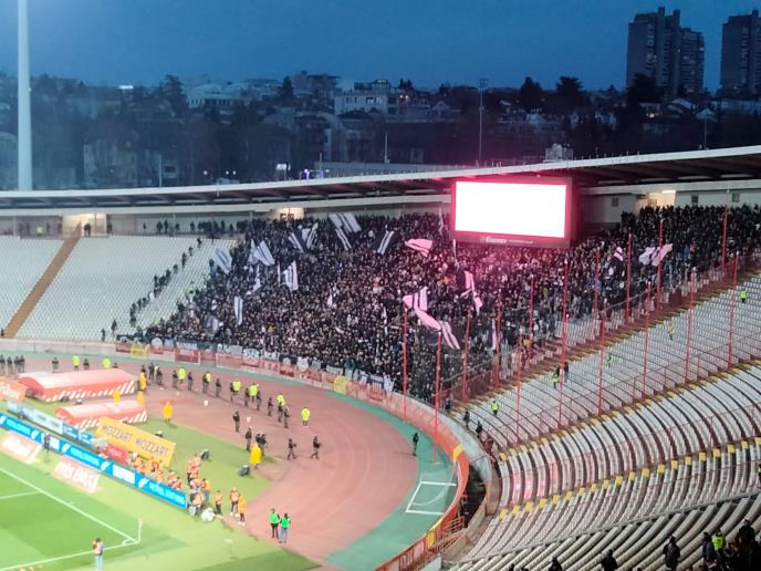 Pristalice "crno-belih" na meču koji je odigran 16. aprila ove godine lomile stolice na južnoj tribini, napravile su štetu na ulaznim kapijama i polupali svetla na tom delu stadiona. Utakmica je završena bez golova.