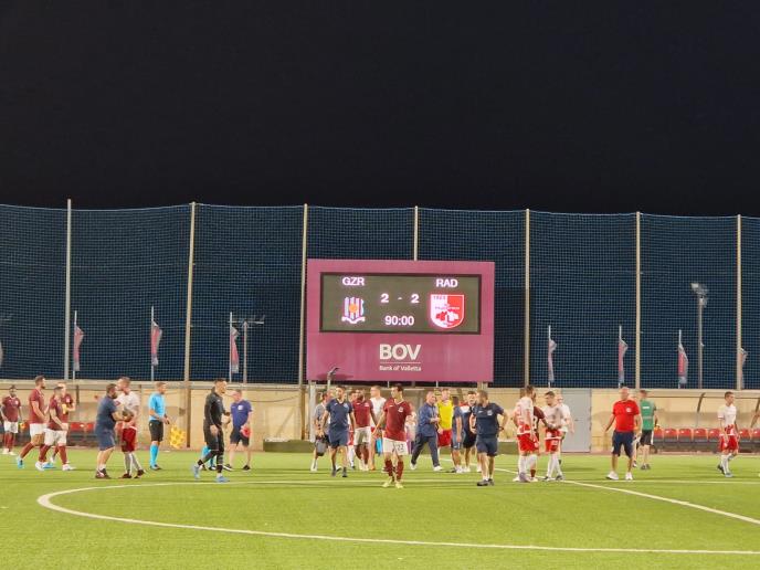 Iako su imali prednost na poluvremenu, Nišlije su u nastavku doživele potpuni kolaps, pa je Gzira stigla do preokreta, ali je utakmica završena rezultatom 2:2, pošto je Radnički izjednačio u 92. minutu.