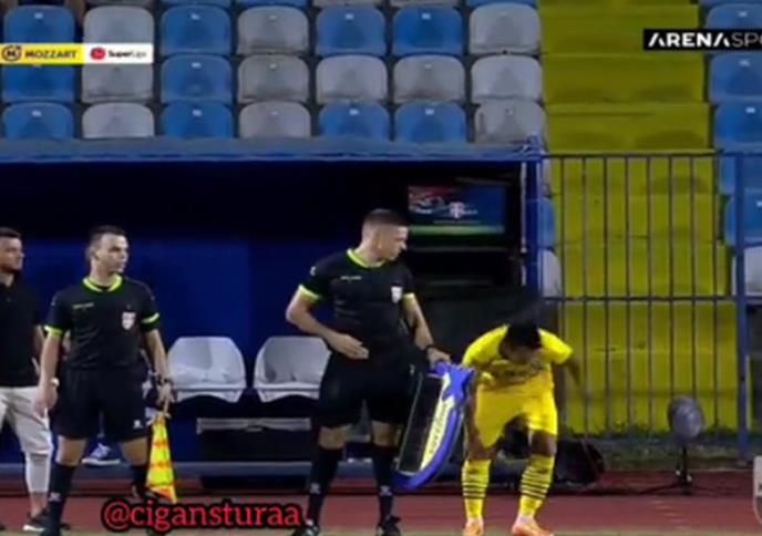 Međutim, dok je stajao pored četvrtog sudije Jeknića, fudbaler Voždovca je doživeo neočekivani nezgodan udarac. Sudija Jeknić je u tom trenutku držao ručni semafor, ali ga je onda neoprezno spustio pre nego što je Sentoku kročio na teren, pa ga je semaforom udario po kolenu, a fudbaler Voždovca imao je bolnu reakciju.