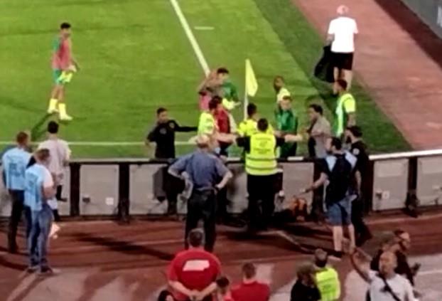 Bivši reprezentativac Srbije i fudbaler Crvene zvezde se zaleteo i udario čoveka sa markerom koji je stajao iza gola na severnoj strani stadiona Partizana.
