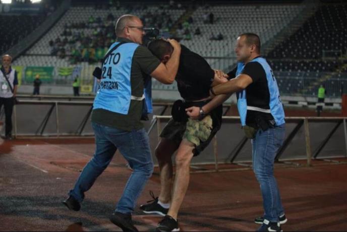 Jedan od navijača je skočio sa tribine na atletsku stazu i, iz nekog razloga, ušao u fizički obračun sa "fotografima" sa utakmice.