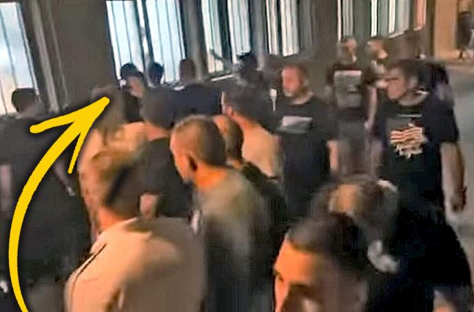 Na snimku se vide navijači ispred prostorija kluba i svlačionica kako lupaju na prozor, dozivaju fudbalere i psuju ih.