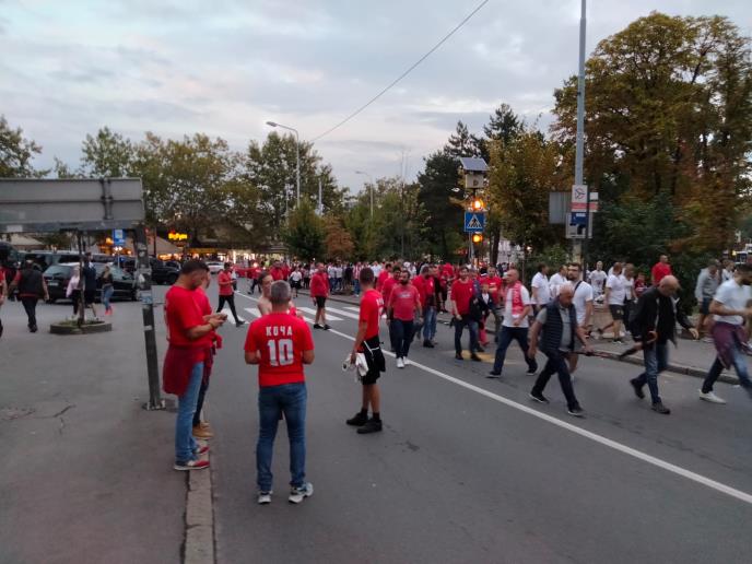 Oko njih je veliak masa navijača Zvezde, Izraelci su očigledno svesni da ih čeka pravi pakao u Beogradu.