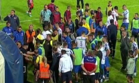 Dok su treneri davali izjave, igrači oba tima su se sjurili u tunel, gde je došlo do čarki.