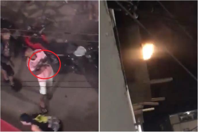 Jedan mladić je snimljen kako ispaljuje hice dok se nalazi među gomilom navijača koja haotično trči na sve strane.