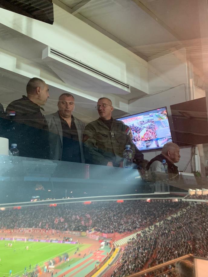 Na stadionu u Ljutice Bogdana, u "policijskoj kontrolnoj sobi" nalazi se Ministar unutrašnjih poslova Aleksandar Vulin, koji je zajedno sa komandantom Žandarmerije Dejanom Lukovićem i načelnikom Uprave policije Dejanom Bojovićem, obišao pripadnike policije koji obezbeđuju utakmicu.