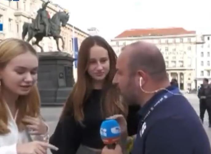 Devojke su se unosile u lice novinaru očigledno pod dejstvom alkohola, neozbiljno odgovarale na pitanje, a vrh je usledio kada je jedna od njih pljunula pored kamere. Tu se prilog završio.