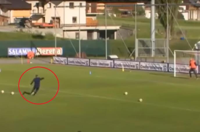 Na snimku iz 2017. godine možemo da vidimo kako Siniša šutira slobodne udarce dok je Vanja na golu potpuno nemoćan.