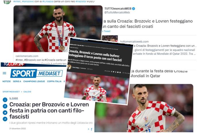 Gotovo svi italijanski mediji pisali su o tome šta su radili Dejan Lovren i Marcelo Brozović posle osvajanja trećeg mesta na Mundijalu u Kataru i povratka u Hrvatsku. Video na kojem uzvikuju ustaški pozdrav "Za dom spremni" pevaju šovinističke pesme Marka Perkovića Tompsona protiv Srba došao je i do Italije.