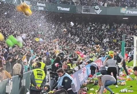 Na utakmici protiv Atletik Bilbaa, koja je završena bez golova, navijači zeleno-belih su, već tradicionalno pred novu godinu, ubacivali plišane igračke na teren.