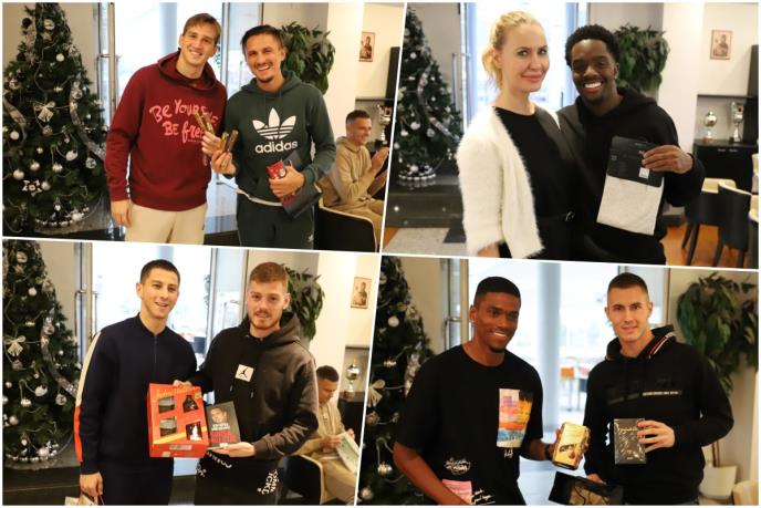 Skupoceni šampanjac Filipović je poklonio Andradeu. Sa druge strane, Filipović je na dar dobio knjigu "Siniša moj otac" od Viktorije Mihajlović, a Šehović korisno štivo "Fudbal - koraci do uspeha” . Portparolka Biljana Obradović obradovala je Kvinsija Meniga majicom dugih rukava.