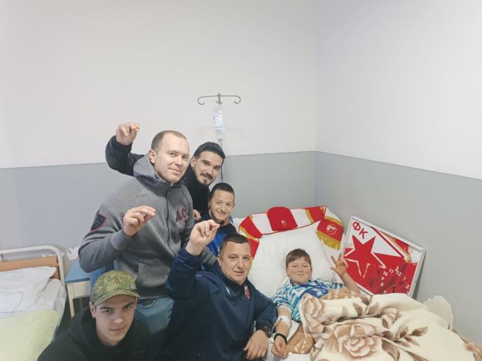 Zvezdaši su tom prilikom Stefanu i Milošu doneli crveno-bele poklone i poželeli brz oporavak.