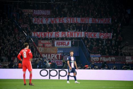 "70 evra? Još uvek nismo Nejmar. 20 je dosta (sugestija). Je*eš PSŽ", poruka je navijača Bajerna.