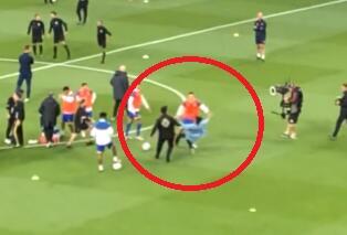 Naime, dok su Kristijano i njegovi saigrači zagrevali pred meč, na teren je uleteo jedan navijač i zatrčao se ka Ronaldu, pa je tom prilikom "uklizao" ispred njega.