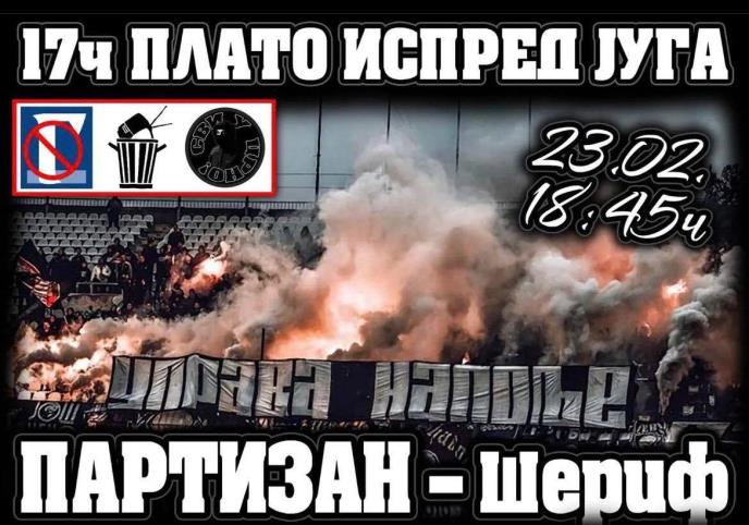 Pozivamo sve navijače Partizana da u četvrtak 23. februara u 17h dođu na plato ispred južne tribine Partizanovog stadiona odakle ćemo krenuti u protest do upravne zgrade na severnoj tribini. To će biti svojevrstan početak borbe protiv uništenja Partizana.