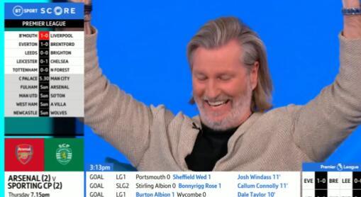 Robi, koji radi kao komentator za BT Sport nije krio oduševljenje kada je saznao da je Čarli postigao gol.