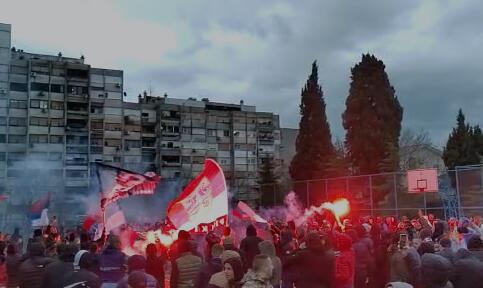 GORI PODGORICA! VIJORE SE SRPSKE TROBOJKE, UPALJENE BAKLJE NA TRGOVIMA! Posle spektakla navijači krenuli na stadion! (VIDEO)