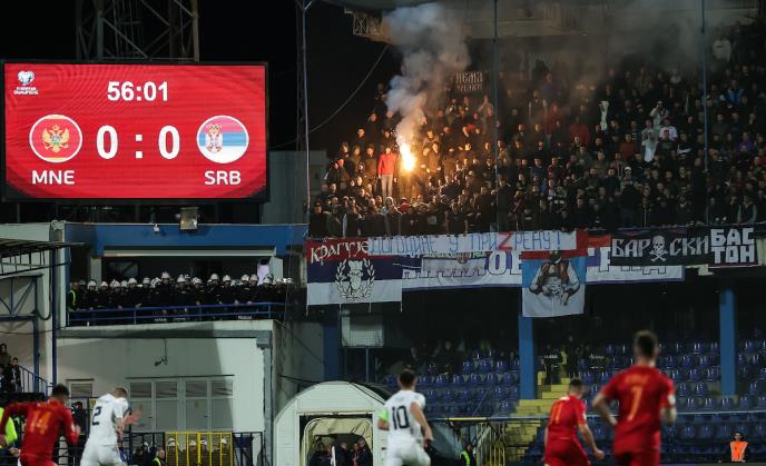 Organizacija utakmice između Crne Gore i Srbije u Podgorici zakazala je u pojedinim trenucima, pa je ispred sektora gostujućih navijača za dlaku izbegnut ozbiljniji incident.
