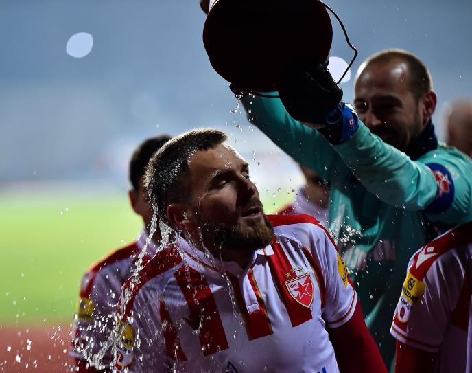 Ne samo zato što je pogotkom u 23. minutu došao do brojke od 100 golova u dresu Crvene zvezde u takmičarskim utakmicama, već i načinom na koji su to proslavili njegovi saigrači.