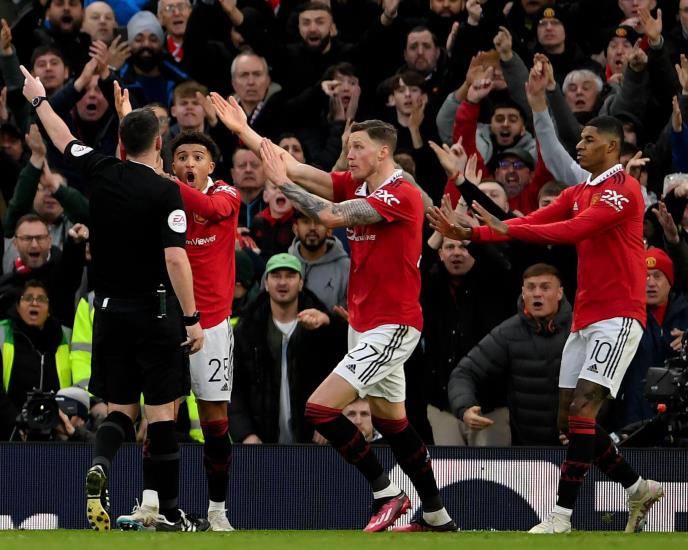 Mančester junajted kažnjen je sa 65.000 funti nakon što su njegovi igrači opkolili zvaničnika utakmice u 71. minutu utakmice protiv Fulama u FA kupu u nedelju, 19. marta 2023 - piše u saopštenju FA.