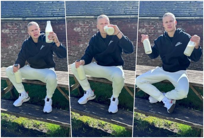 - Ja i moj magični napitak - napisao je Erling Haland, uz set fotki sa flašama mleka.