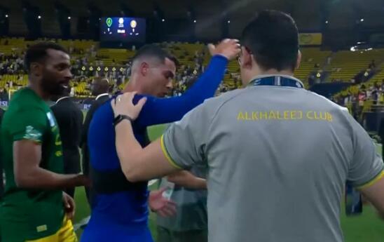 U jednom momentu član stručnog štaba Al Kaleja zagrlio je Ronalda kako bi napravio selfi i to je razbesnelo Portugalca, koji ga je odgurnuo od sebe.