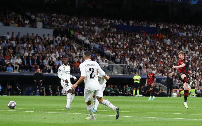 De Brujne koji je, posle asistencije llkaja Gundogana, neodbranjivo šutirao iz prve i pogodio mrežu Reala sa oko 20 metara.