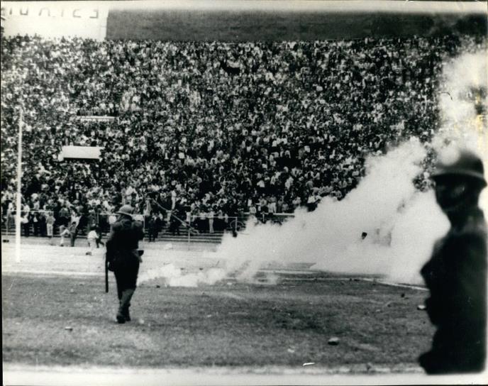 Dva čoveka su sa tribina sišla na teren kako bi napala sudiju, jedan je odmah zaustavljen, a drugi je brutalno pretučen. To je iznerviralo ostale koji su raznim predmetima gađali policiju, ali to je izazvalo još veći problem jer su policajci odgovorili bacanjem suzavca na tribine.