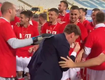 Dok su igrači Crvene zvezde slavili pred najvatrenijim pristalicama, u centru pažnje se našao i trener Miloš Milojević. Navijači sa severne tribine počeli su da skandiraju "Miloje, Miloje", a emocije su savladale mladog stručnjaka. U jednom trenutku je morao da obriše suze sa lica.