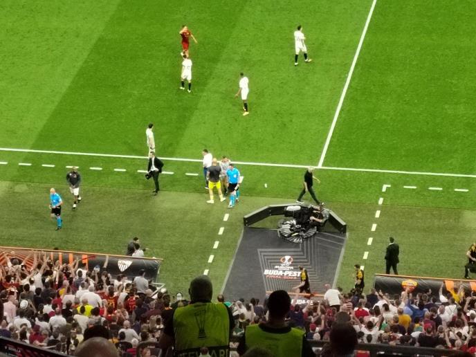 Nakon vodećeg gola koji je za Romu postigao Paulo Dibala, došlo je do tenzija između ljudi i trenera na klupi dva tima. Tada su fudbaleri Sevilje tražili faul za koji su smatrali da se dogodio neposredno pre gola, a u jednom trenutku Žoze Murinjo, trener italijanskog tima, došao je do Seviljine klupe gde je 10-ak sekundi razgovarao sa Dmitrovićem.