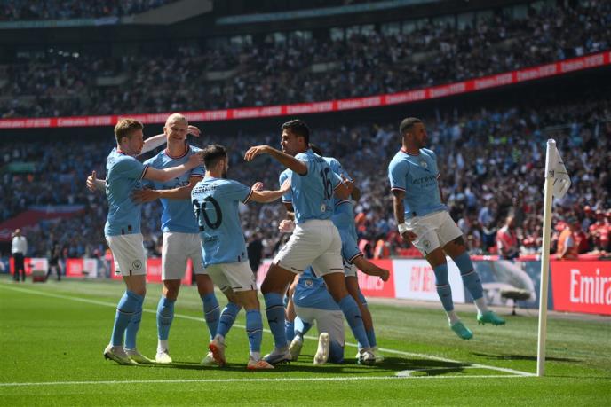 Ekipa Pepa Gvardiole krenula je sa centra u borbi za prestižni trofej, upravo Gundogan je loptu vratio golmanu Ortegi, koji ju je potom poslao napred. Erling Haland je skočio, a zatim i Kevin de Brujne, pre nego što je ona došla do nekadašnjeg reprezentativca Nemačke.