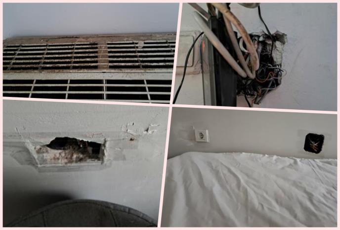 Da, ipak, pobrojimo sve: u zidovima su na sve strane rupe (?!), struja je otvorena i bez ikakve zaštite, štekeri ne postoje, krevet u flekama, zidovi ispucali i prljavi, u ormaru je nekoliko slojeva prašine i prekrivač koji je pitanje kada je poslednji put opran... Sve se dešava u dubokoj noći, oko 03 časa, nemam baš nikakvog izbora, prosto moram tu da prespavam.