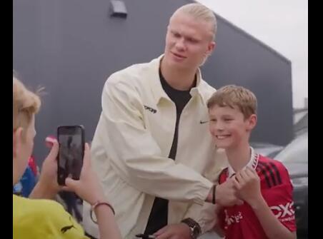 Dečak u dresu "Crvenih đavola", ljutog gradskog rivala tima za koji nastupa Haland, poželeo je da se fotografiše sa slavnim Norvežaninom.