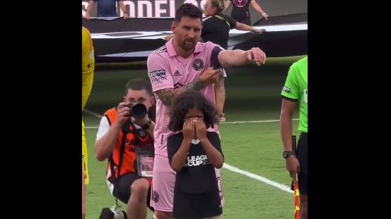 Mesi je primetio da se sa dečakom nešto dešava, pa mu je uputio i nekoliko reči ohrabrenja posle kojih je mališan obrisao suze.