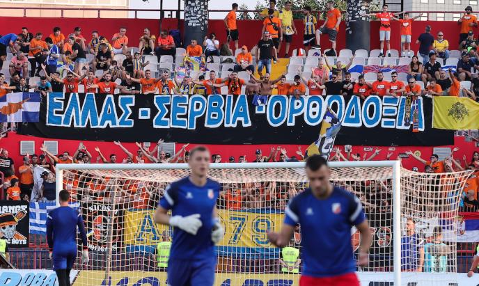 Kiprani su tom prilikom na južnoj tribini stadiona u Novom Sadu podsetili na bratske odnose Grka i Srba, pa su razvili veliki transparent na kome je pisalo "Grčka - Srbija - Pravoslavlje". Uz to su okačili i srpsku trobojku.