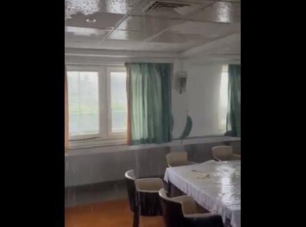 Voda je probila krov i slivala se po stolovima i podu u svečanoj sali, što se jasno može videti na snimku koji se pojavio na društvenim mrežama.