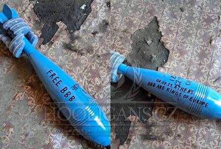 Na Tviteru je isplivala fotografija na kojoj se nalaze dve plave granate sa šokantnom porukom: "Sloboda za BBB" i "7.8.2023. Atina. BBB su kraljevi Evrope".