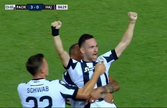 Srpski reprezentativac i bivši fudbaler Partizana Andrija Živković duplirao je prednost PAOK-a. Živković je dobio sjajnu loptu na 7-8 metara od gola, bio je potpuno sam i lako matirao golmana Lučića.