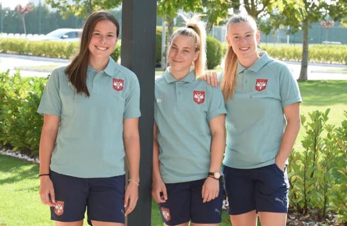 Devojke igraju prvi meč protiv Ukrajine u Poljskoj, 22. septembra (15,00), četiri dana kasnije, 26. septembra, rival će biti Grčka, utakmica se igra u Sportskom centru FSS u Staroj Pazovi (19,00). Na spisku selektora Zečevića za ova dva meča nalaze se: golmani Milica Kostić (Ferencvaroš, Mađarska), Sara Cetinja (Inter, Italija), Jovana Petrović (Crvena zvezda), odbrana Violeta Slović (Spartak), Nevena Damjanović (SCKA Moskva), Anđela Krstić (Crvena zvezda), Anđela Frajtović (Đer, Mađarska), Aleksandra Lazarević (Zenit, Rusija), Tajla Vlajnić (Vestern Junajted, Australija), Isidora Vučković (Spartak), srednji red Jelena Čanković (Čelsi, Engleska), Sara Pavlović (Famalikao, Portugal), Sofija Sremčević (Crvena zvezda), Marija Ilić (Karagumruk, Turska), Tijana Filipović (Spartak), Živana Stupar (Spartak), Vesna Milivojević (Kanbera, Australija), Dina Blagojević (Crvena zvezda), napad Jovana Damnjanović (Bajern Minhen, Nemačka), Miljana Ivanović (Lilestrem, Norveška), Alegra Poljak (Levante Las Palmas, Španija), Milica Mijatović (Fiorentina, Italija), Mina Čavić (Crvena zvezda).