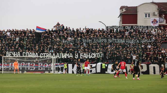 Crno-beli su u okviru 10. kola gostovali na stadionu "Mladost", a na početku utakmice su razvili na južnoj tribini citat iz "Gorskog vijenca": "Čuj narode, svi skinite kape! Hoću spomen da činim dušama vitezova našega naroda!" Večna slava stradalima u Banjskoj".