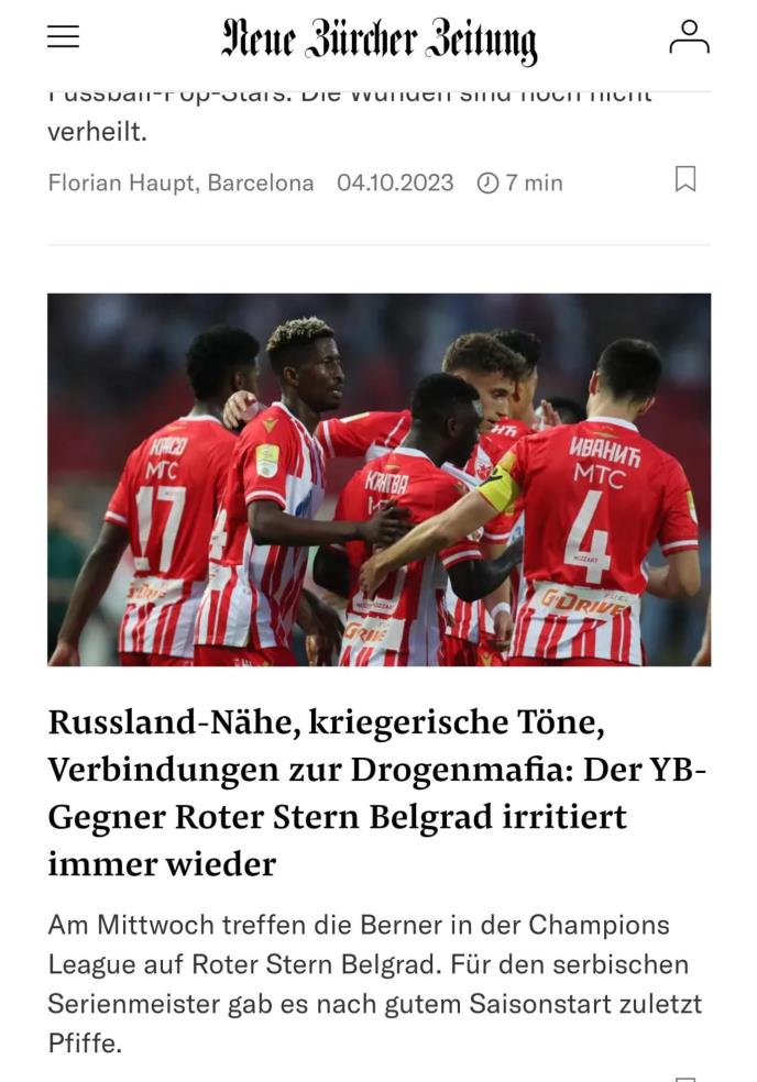 Neverovatno! Iz zemlje Švajcarske, neutralne po svom statusu, dugi niz decenija. Očigledno im Srbi i Srbija nisu po volji. Medij iz Ciriha "Neue Zuriche Zeitung", tačnije njihov izveštač iz Beograda, umesto o utakmici piše o politici, uz skandalozan naslov: