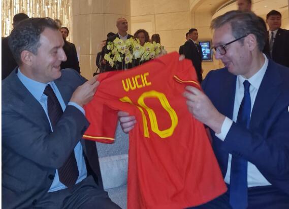 Vučić je od Jankovića na poklon dobio dres Kine sa njegovim prezimenom.