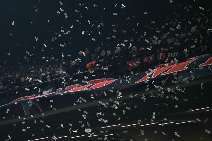 Navijači su spremili velike količine lažnog novca, odnosno novčanica sa likom golmana kog su nazvali "Dolaruma", a kada je on stao na gol, sinhronizovanu su bacili sve ka terenu.