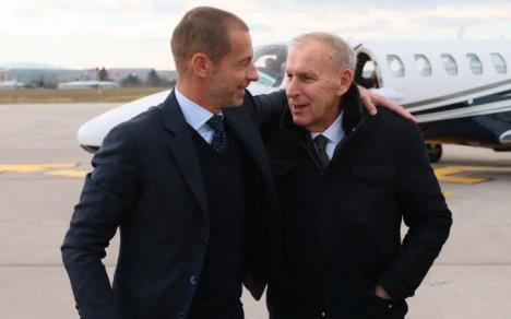 "Prvi čovek Evropske fudbalske unije ukazao je veliku čast Fudbalskom savezu i državi Srbiji, biće prisutan na oba ova velika događaja za našu zemlju, zajedno sa Zoranom Lakovićem, direktorom Nacionalnih asocijacija UEFA i Zoranom Jankovićem, gradonačelnikom Ljubljane. Dragog gosta na niškom aerodromu „Konstantin Veliki“ sačakala je delegacija Fudbalskog saveza Srbije na čelu sa predsednikom Draganom Džajićem, odnosno potpredsednikom Branislavom Nedimovićem i generalnim sekretarom Jovanom Šurbatovićem", prenosi sajt Fudbalskog saveza Srbije.
