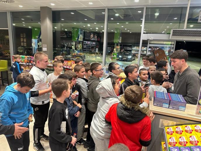 Oni su okružili Dušana Vlahovića želeći da se slikaju sa njim i uzmu autogram.