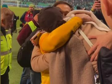 Iskusni goman odmah je otrčao do tribina, čvrsto zagrlio i poljubio Olgu, koja je čitav meč vatreno navijala za svog dragog.