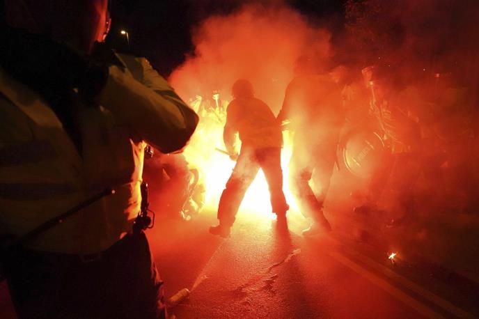 Policajac je prebačen u bolnicu sa opekotinama, a u neredima je povređeno ukupno četiri organa reda, dva policijska konja i dva psa,